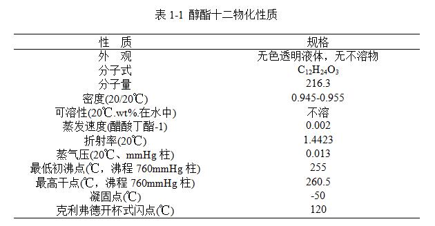 醇酯十二化學名稱:2,2,4-三甲基-1,3-戊二醇單異丁酸酯。