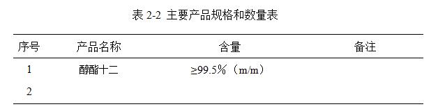 本裝置年運行時數8000小時。本裝置的公稱生產能力為30kt/a 醇酯十二。