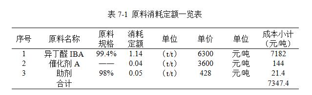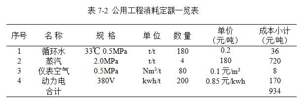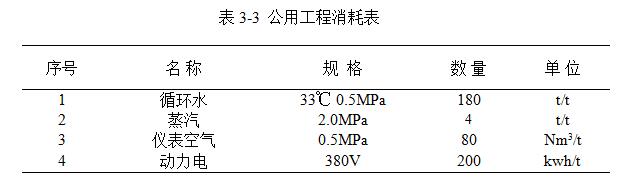 以上數據為裝置設計值,裝置生產達產后綜合指標應低于表中數據。