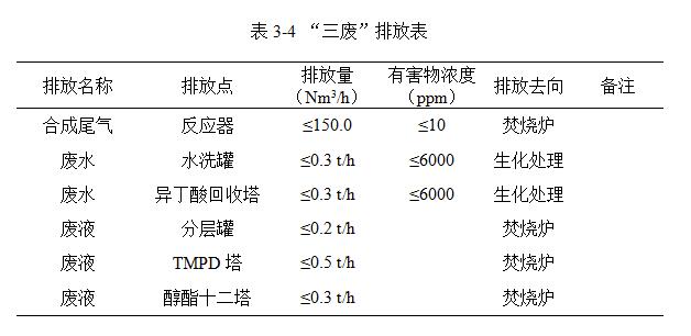 TMPD塔塔頂流出物主要是水、異丁醛、異丁醇、異丁酸異丁酯和少量TMPD、副產物。冷凝的液體送入焚燒爐焚燒。側線采出主要是TMPD和少量水、醇酯十二、副產物,送至TMPD儲罐或返回到TXIB反應器。