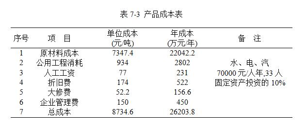 本項目年生產醇酯十二30,000噸,醇酯十二每噸售價1.5萬元,年銷售收入45000萬元(不含稅為38461萬元)。