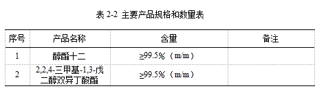 e. 可以根據(jù)醇酯十二和 2,2,4-三甲基-1,3-戊二醇雙異丁酸酯的市場(chǎng)情況調(diào)節(jié)醇酯十二與 2,2,4-三甲基-1,3-戊二醇雙異丁酸酯的產(chǎn)能比例。