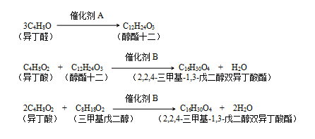 本項(xiàng)目采用一步法合成醇酯十二,再利用醇酯十二合成 2,2,4-三甲基-1,3-戊二醇雙異丁酸酯。