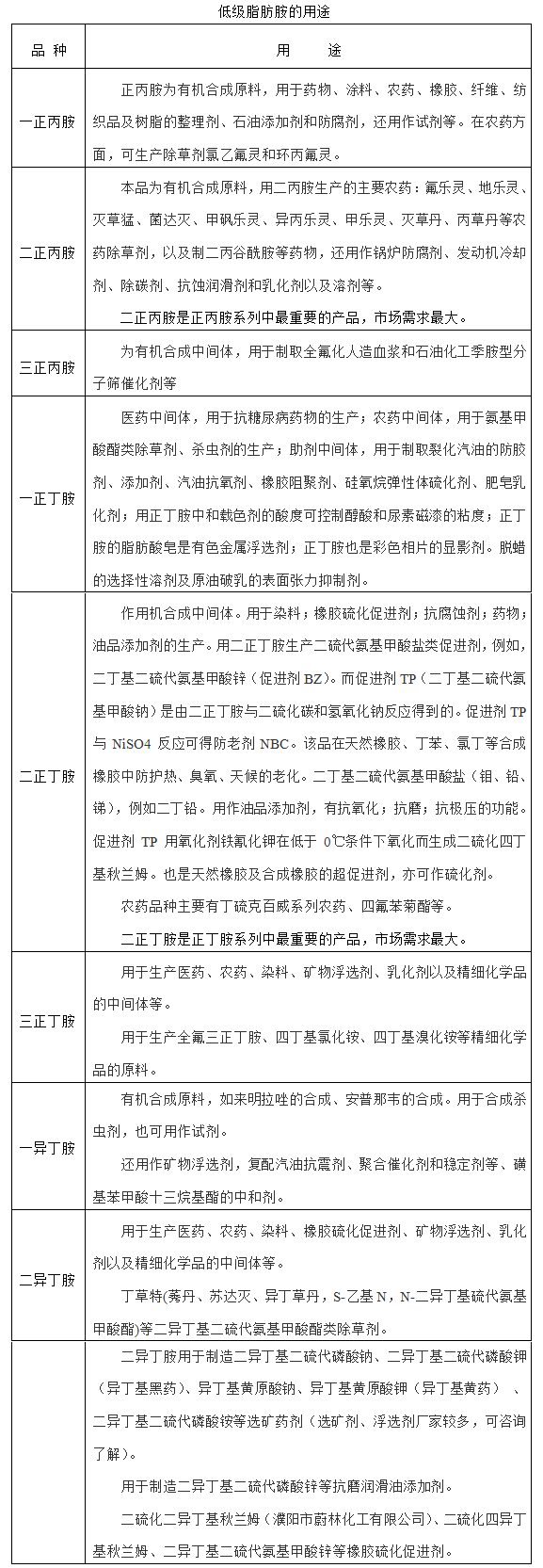 現(xiàn)建議利用該生產(chǎn)裝置,在原有基礎(chǔ)上進行適當改造,成為一套綜合性的低級脂肪胺生產(chǎn)裝置。改造后,該裝置可進行正丙胺、正丁胺、異丁胺等低級脂肪胺系列產(chǎn)品的生產(chǎn)。該系列產(chǎn)品是重要的化工原料,主要應用于農(nóng)藥、醫(yī)藥、染料、橡膠等。