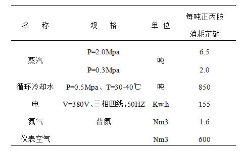 本裝置年生產(chǎn)能力為2000噸/年正丁胺、2000噸/年正丙胺、1000噸/年異丁胺,每年生產(chǎn)時間為8000小時。
