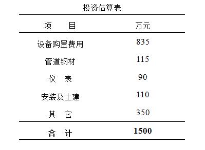由上表可以看出,該項目具有投資。ㄑb置投資約1200萬元、輔助設施約500萬元、土地投資應參考不同地區(qū)實際情況而定、流動資金的儲備和建設資金來源由企業(yè)另行考慮)、見效快(年利潤約2000萬元)的特點,從經(jīng)濟性分析來看具備可行性。