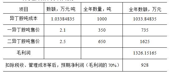該裝置的以全年生產(chǎn)多種胺類產(chǎn)品中的一種計算收益情況如下表。企業(yè)可以根據(jù)市場供需情況,靈活安排幾個品種胺類的開車。